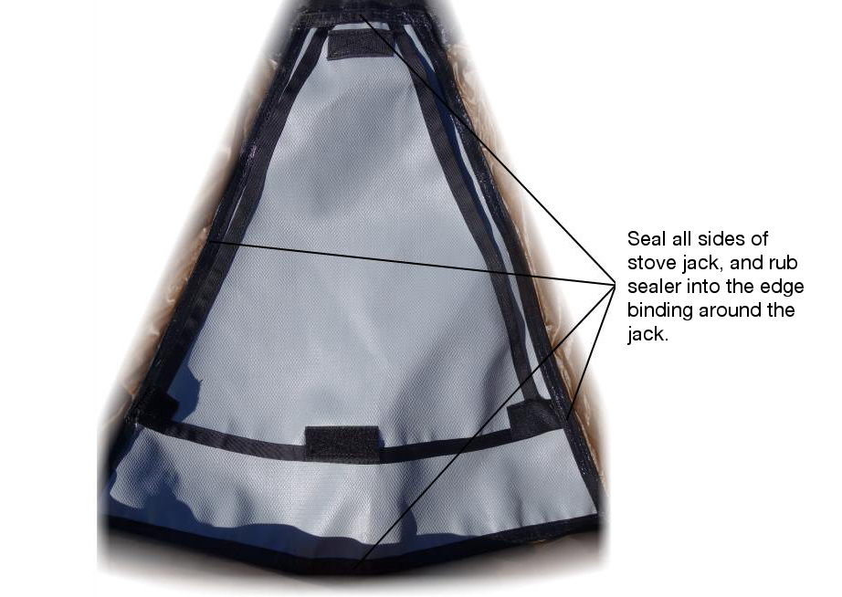6: Cone: The cone may be the easiest part of the shelter to seal. The cone itself is waterproof, just cover the seam, the hang loop, and the stitching on the labels.