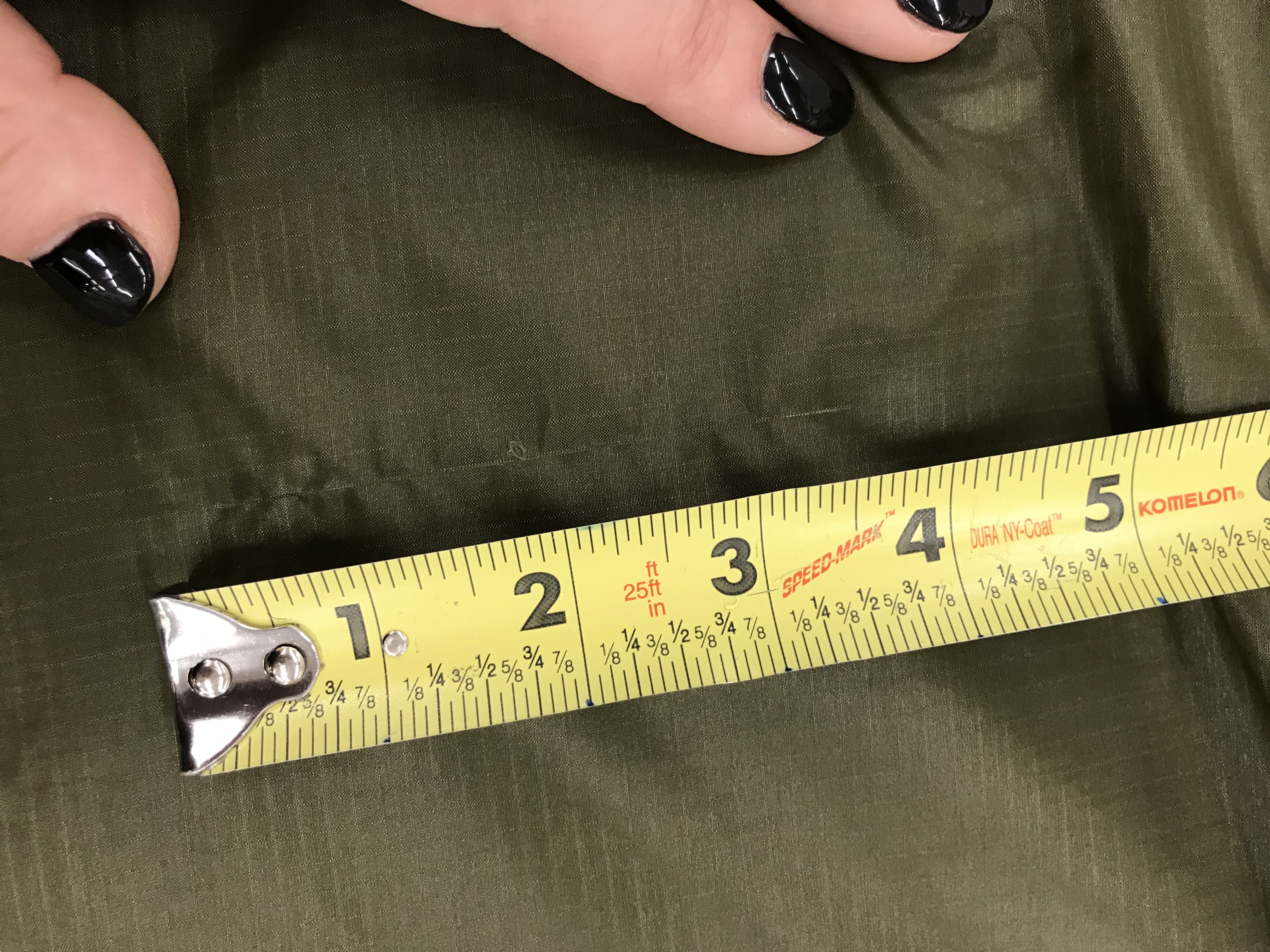 3.) Our Sewers and Inspectors use tiny scissors called nippers that are used to trim loose or excess threads. Sometimes we slip and accidentally snip the fabric in a tent panel (we jokingly call this a nip-slip- haha!) We patch the small hole throw it in the Blem Bin.